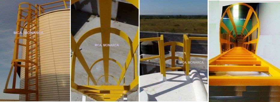 Recubrimientos MCA: MONARCA de platico reforzado con fibra de vidrio frp, de gran resistencia química en plantas tratadoras de aguas residuales, adaptamos estructuras con andadores peatonales en planta de tratamiento de aguas residuales de transito humano, sobre la superficie con gran seguridad.
